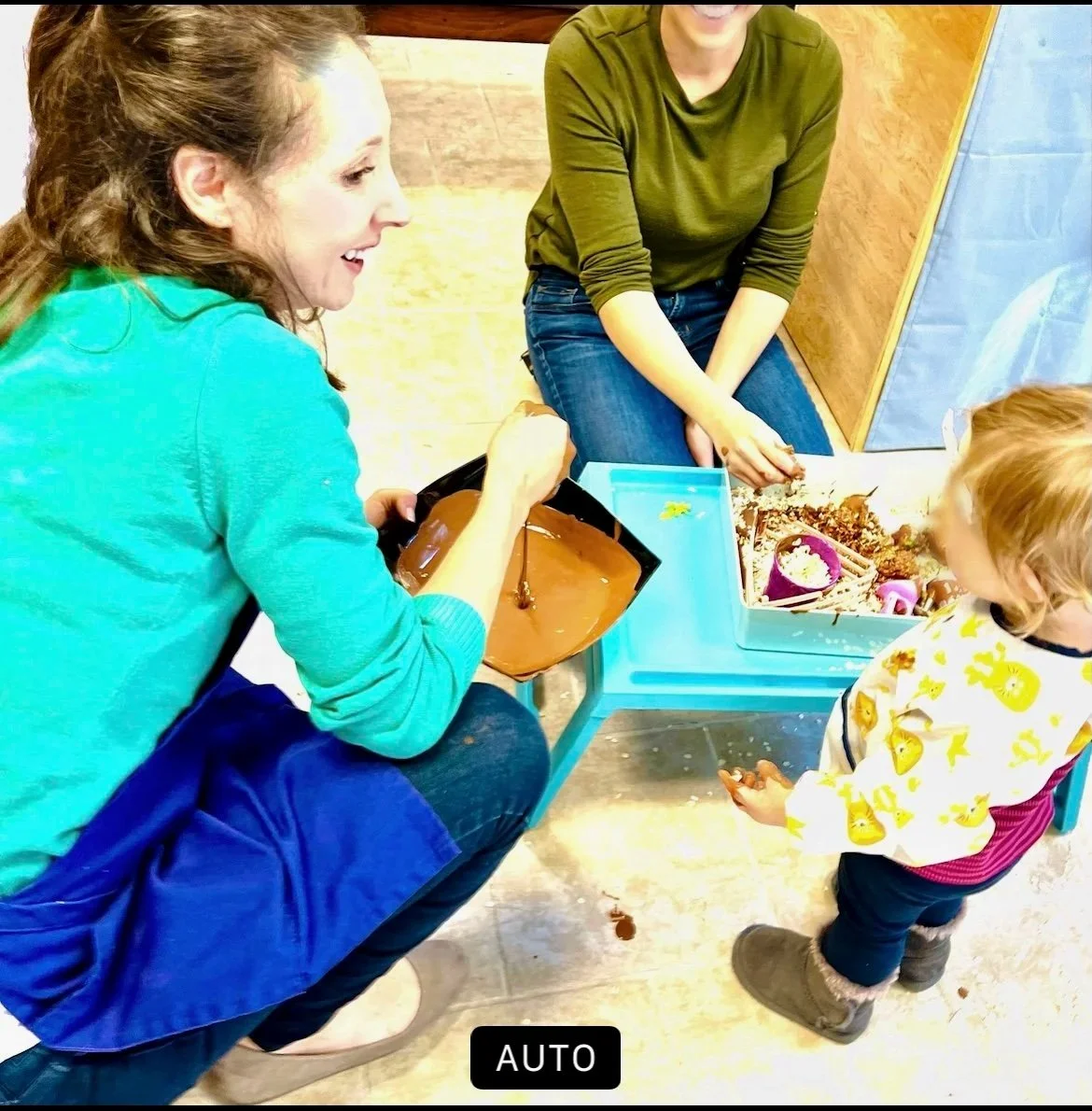“ I hope these classes bring my love of play and my passion for cognitive development to you and your child. It was my goal to have a class that I’d want to attend and that a little one loves from start to finish. There’s no need to wrangle or arm belt squirmy kiddos into laps. Each activity is created to wow your little explorers, excite their curiosity and engage their *whimsical* attention spans. Classes have a relaxed, fun environment with moms meeting other moms, parents and caregivers connecting and learning new ways to play with their little ones, a whole bunch of little faces covered in very colorful things as they seriously concentrate on their important play. Miss L
