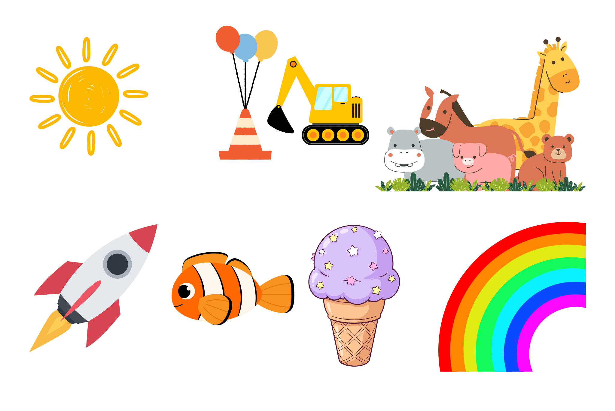 Featuring things they love (like animals & trucks) and new things they’ve never seen before.