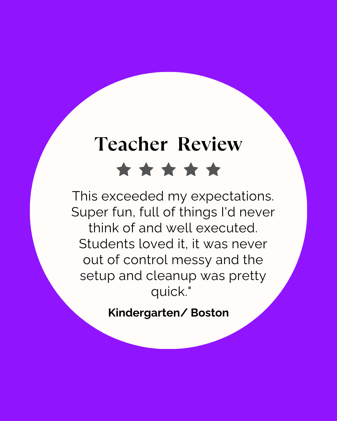 No work for teachers! Hands-on sensory & messy play activities and materials thoughtfully created, designed to fit in any classroom space, set-up in attention grabbing, naturally engaging ways. We lead the play and when it’s over, quickly clean up and clear out. No mess left behind!